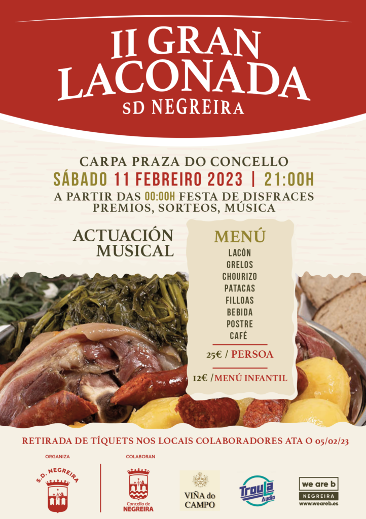 Despois de dous anos sen facela por mor da pandemia do Covid-19, voltamos a facer esta gran festa do lacón con grelos o sábado 11 de febreiro a partir das 21:00h na Carpa da Praza do Concello. Un menú completo no que non faltarán produtos típicos deste tempo como as filloas ou as orellas. Xa […]
