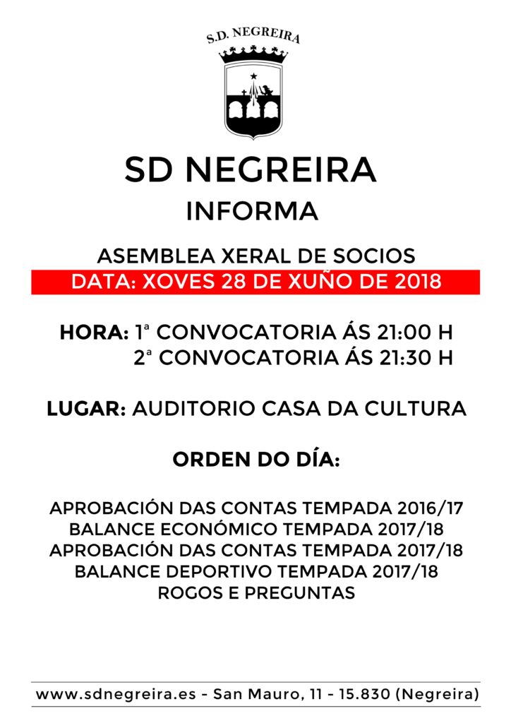 Xa se poden adquirir os Abonos para a tempada 2018/19, onde a SD Negreira afronta unha dura competición na Preferente Galicia Norte, con equipos que aspiran o ascenso despois de reforzarse con grandes xogadores. Os nosos tentarán facelo o mellor posible con un plantel que conxuga xuventude e veteranía. Os prezos para este ano son […]